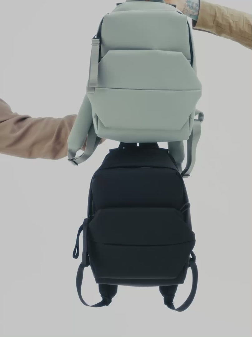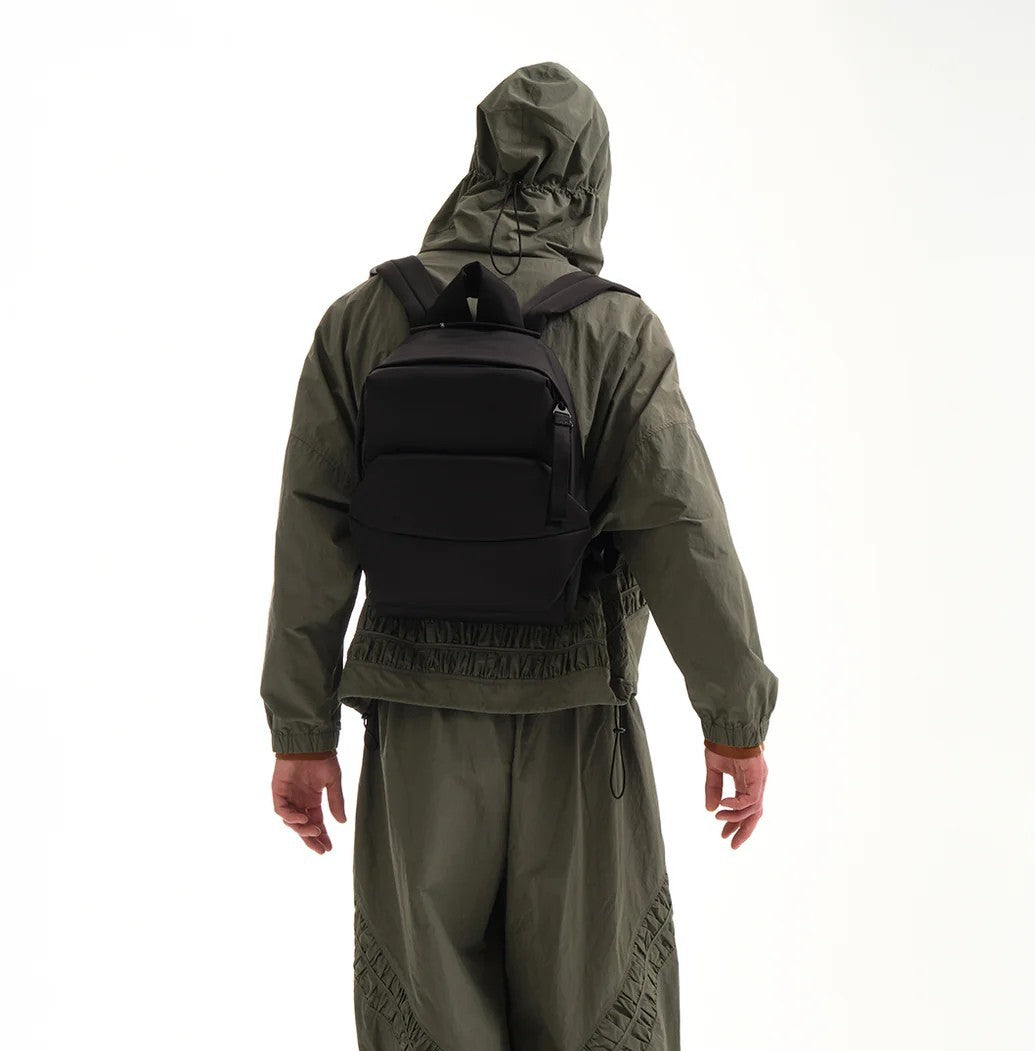 The SAVA S is a more compact version of the original SAVA, offering the same dynamic looks and comfortable fit in a smaller size, perfect for everyday use. The main compartment features an interior strap to keep your laptop in place. Additionally, a hidden front pocket provides convenient storage for smaller essentials. The adjustable nylon shoulder straps include extra padding for enhanced comfort. Crafted from 'Sleek Black' nylon, this versatile backpack combines practicality and style in a more portable form.